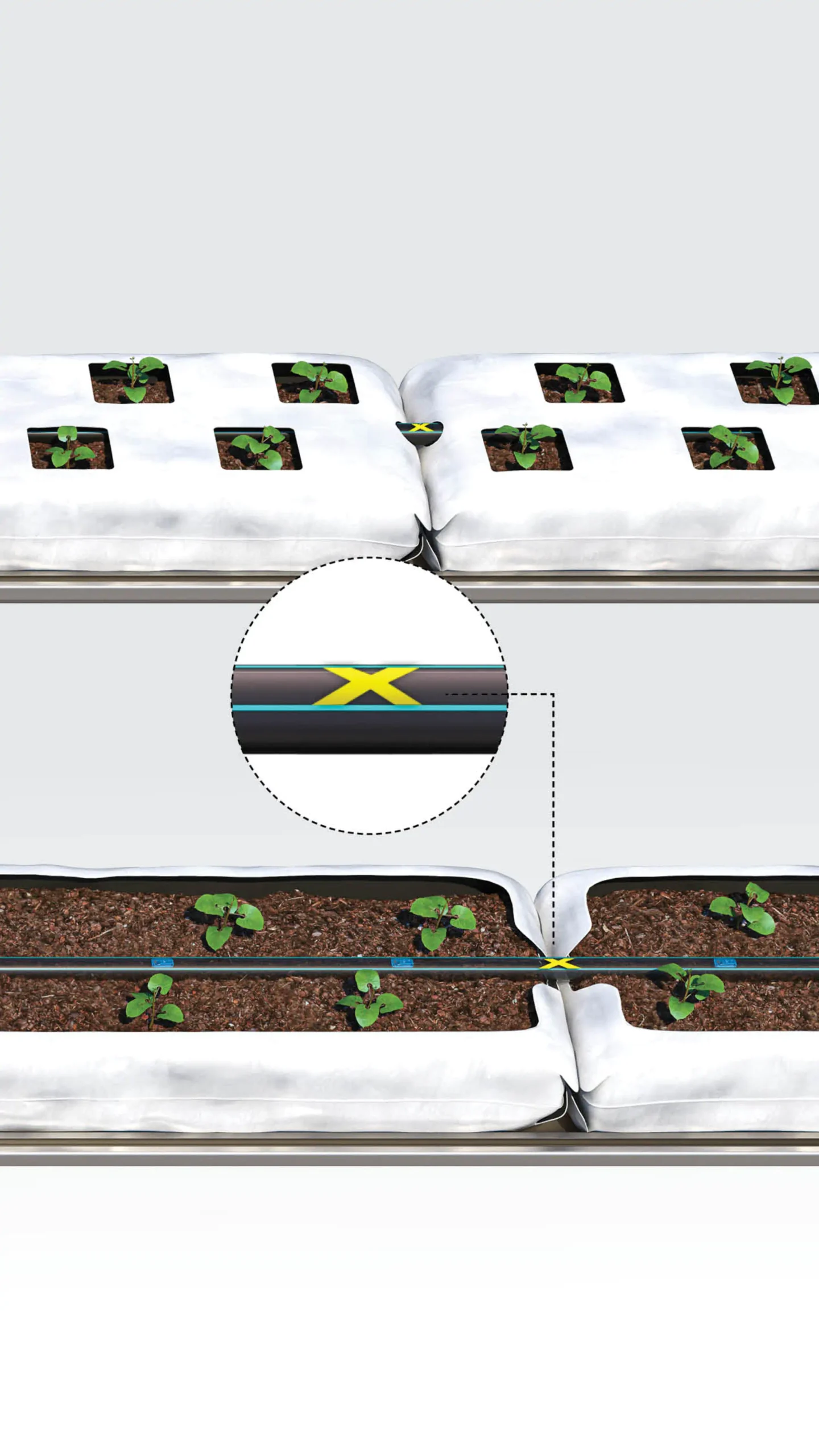 InbarRGX của Metzer là giải pháp nhỏ giọt thông minh, tích hợp tất cả trong một, được thiết kế cho canh tác nhà kính và trồng cây trong túi giá thể. Được trang bị RootGuard® và các đầu nhỏ giọt cụm, hệ thống cung cấp tưới nước đồng đều đồng thời ngăn chặn rễ xâm nhập. Dấu “X” dễ nhận biết giúp căn chỉnh hệ thống với các túi giá thể dài 1 mét để lắp đặt nhanh chóng. Lý tưởng cho các loại cây như dâu tây và cà chua, hệ thống hỗ trợ tưới nhỏ giọt lưu lượng thấp, tưới theo nhịp để tăng năng suất và tiết kiệm nước.